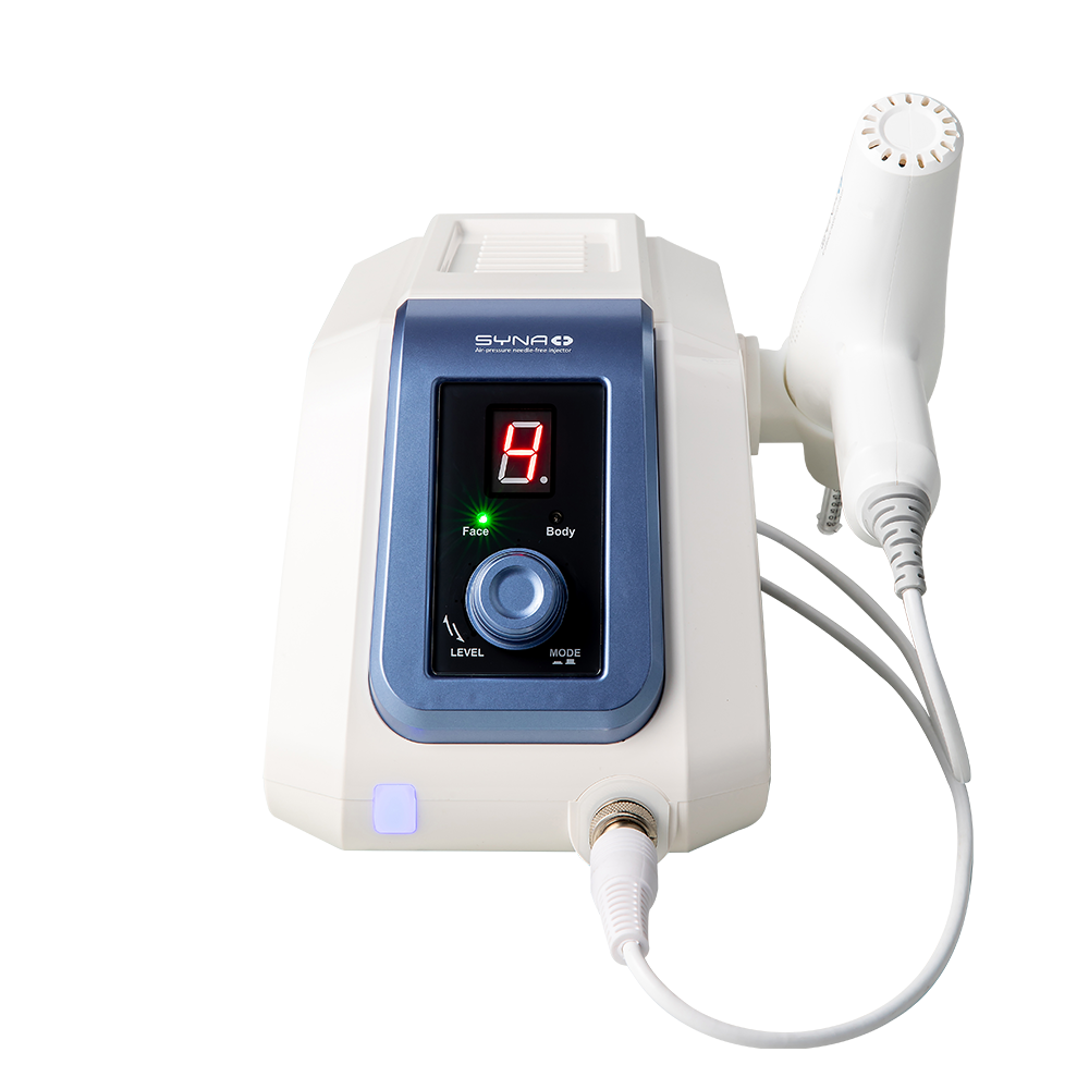 다양한 솔루션 제품을 피부에 주입시키는 장치로 주사 바늘을 사용하는 의료 시술 없이 신개념 에어건을 통해 더욱 간편하고 안전하게 효과를 낼 수 있는 전문미용기기입니다.